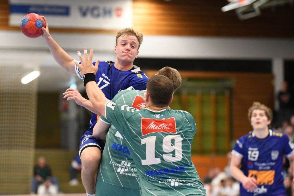 Im zweiten Durchgang steigerten sich die Gastgeber im Angriff. Auf der linken Außenposition überzeugte Laurenz Reiners mit einer starken Trefferquote und fünf Toren. Marten Franke verwandelte alle vier Siebenmeter sicher. Im Rückraum übernahmen Lauro Strothmann (Foto unten) und Nils Schröder die Verantwortung. Nach dem noch knappen 22:20 (38. Minute) zog der VfL dank einer sicheren Abwehr auf 29:22 davon. Auch die jetzt offensivere Abwehr der Gäste konnte den Aufsteiger jetzt nicht mehr stoppen.