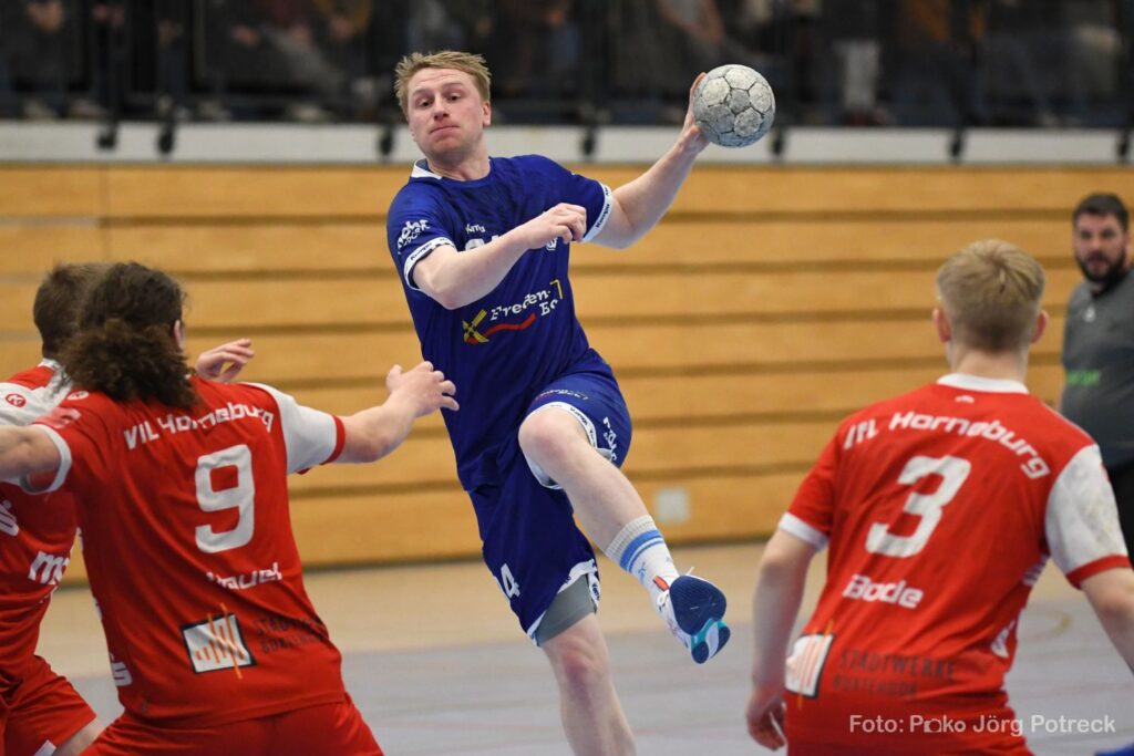 Im ersten Durchgang hatten die Gäste leichte Vorteile. Da stand die Abwehr der Fredenbecker noch nicht richtig. Horneburg setzte sich nach zehn Minuten mit 7:3 ab. In der 25. Minute gelang Jannik Müller erstmals der Ausgleich zum 10:10. Mit einem 14:14 ging es in die Pause.